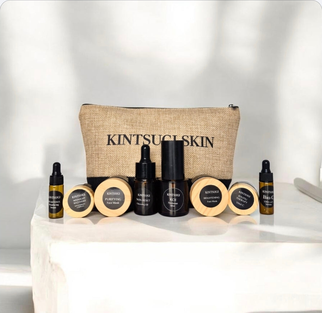 If you've been eyeing our products, but aren't ready to purchase the full size, then this is perfect for you. We've shrunk everything into generous sized minis, each mini lasts two weeks, so you can really discover the Kintsugi Skin difference.